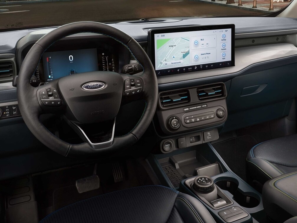 Inside, the Ford Maverick offers a spacious, functional, and tech-forward cabin. The thoughtfully designed interior provides excellent versatility and storage solutions. Seating materials range from durable cloth to premium ActiveX. Interior amenities available include dual-zone climate control, SYNC 4 with enhanced voice recognition, SiriusXM satellite radio, wireless charging, and an 8-speaker B&O sound system.